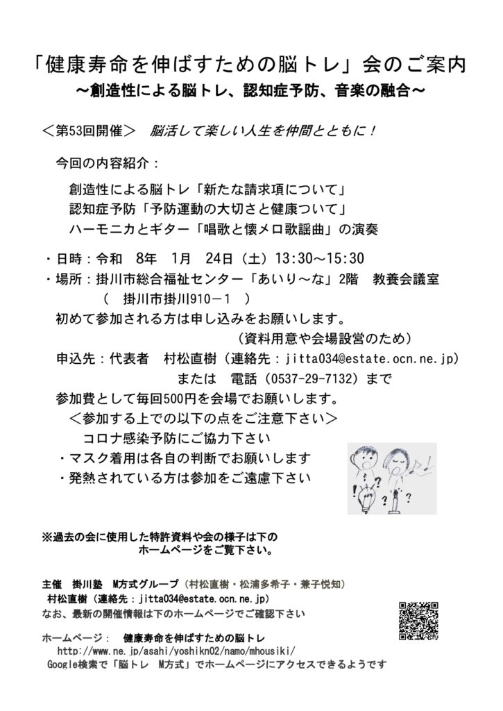 〈第53回開催〉脳活して楽しい人生を仲間とともに!